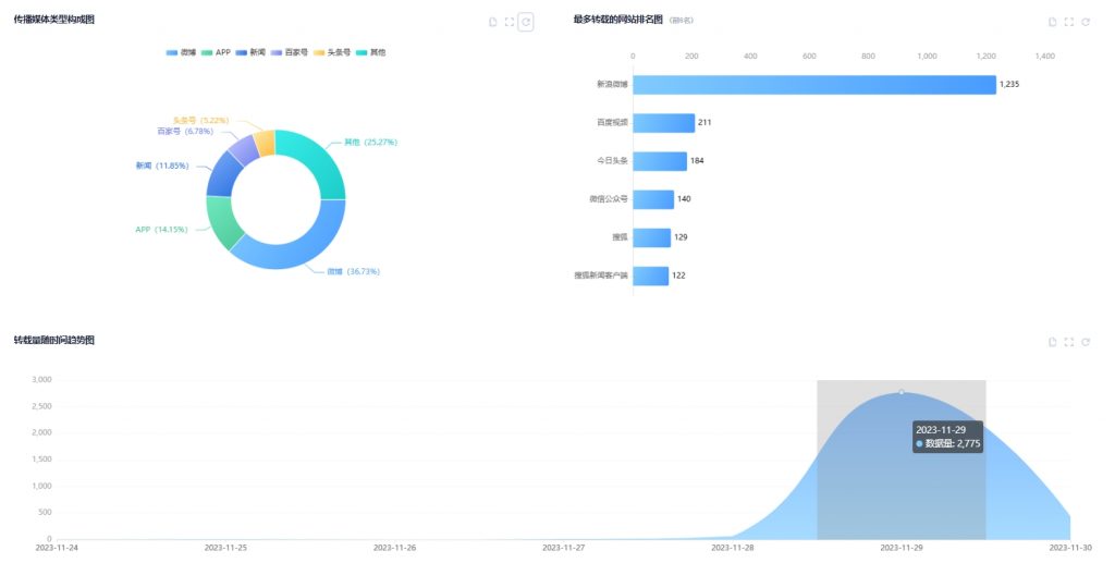 根據(jù)樂思網(wǎng)絡(luò)輿情監(jiān)測(cè)發(fā)現(xiàn),滴滴崩了相關(guān)信息在29日到達(dá)傳播高峰期,該日約有2775條相關(guān)信息,主要分布在微博和其他媒體平臺(tái),微博有1235條相關(guān)信息。