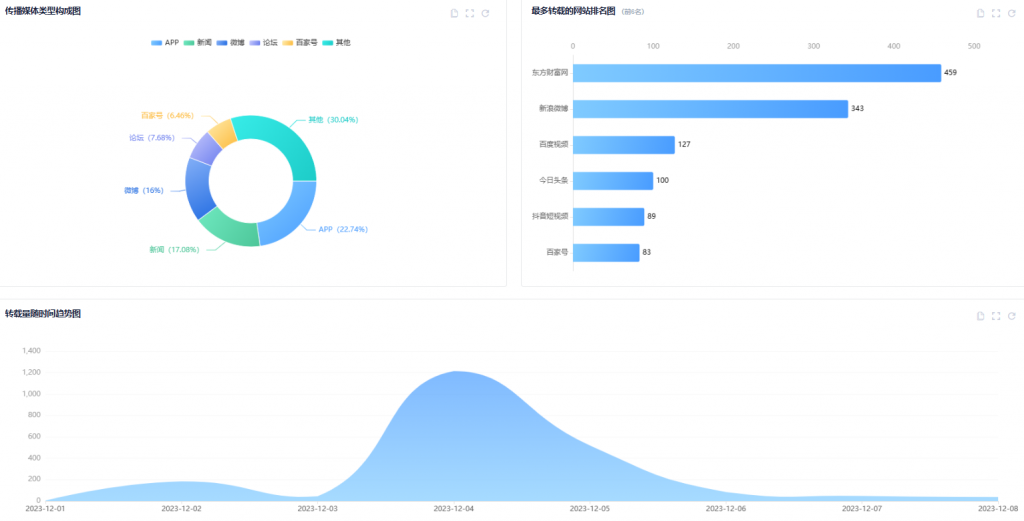 全網(wǎng)信息量最高峰出現(xiàn)在2023年12月4日,當天共產(chǎn)生1215篇相關信息。