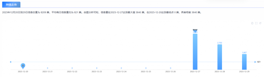 2023年12月20日到29日總共監(jiān)測(cè)到相關(guān)輿情8209篇