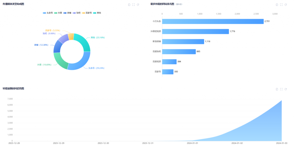 從整體輿情傳播態(tài)勢(shì)來(lái)看,海南廣播電視臺(tái)的反應(yīng)推動(dòng)了本次事件的網(wǎng)絡(luò)輿論傳播,1月3日傳播進(jìn)入高峰值,截至目前仍保持快速傳播趨勢(shì)。