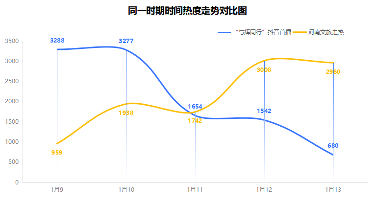 同一時期“與輝同行”抖音首播與河南文旅走熱對比呈對稱走勢