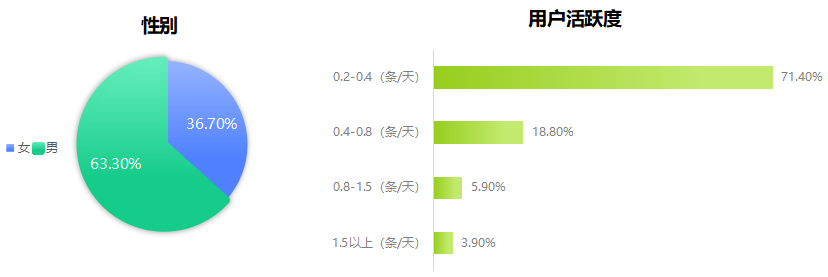 男性群體對信息傳播熱情明顯較高,用戶活躍度一般,0.8條以上占比在10%左右