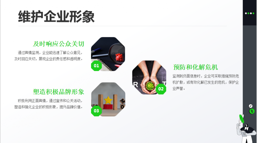 - 形象修復:在負面輿情出現時,及時采取措施修復企業形象。