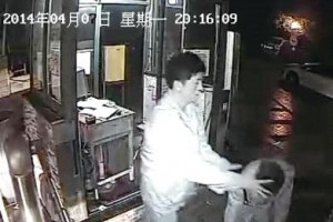 據當日的監控視頻拍攝的畫面顯示,20時14分,一名身穿夾克衫的男子徑直走到保安崗亭,按動按鈕開啟了入車閘道。據譚明說,此人便是當日的男車主。監控顯示,譚明重新關閉了入車閘道,車主再次走過來。他伸手將譚明桌上的記錄本向后丟了出去,再次按動了入車閘道按鈕,并伸出胳膊招手示意其妻開車進入。而他身后的譚明再次按動了按鈕關閉了入車閘道,見狀,車主猛地抓起譚明頭上的帽子,丟在了地上。
