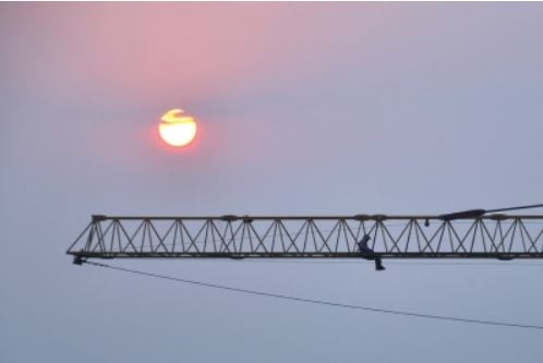 昨天下午,記者在現場看到,該男子坐在吊臂遠端,并不時調整身體位置。一名頭戴紅色安全帽、身上系著防墜掛鎖的救援人員,開始從建筑與塔吊連接處向上攀爬。