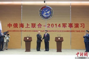 5月20日,中國國家主席、中央軍委主席習近平在上海吳淞海軍軍港,同俄羅斯總統普京一起出席“海上聯合-2014”中俄海上聯合軍事演習開始儀式