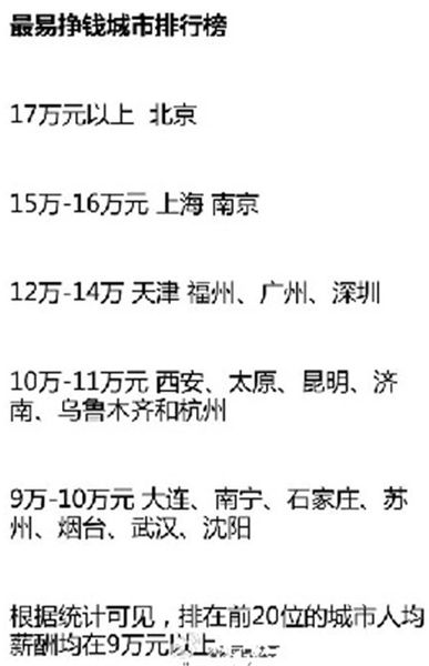 13、最易賺錢城市排行榜