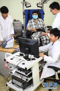 天津,2014年6月14日?“純意念控制”人工神經康復機器人問世?6月14日,技術人員在指導因中風偏癱的董姓患者使用“神工一號”。當日,“純意念控制”人工神經康復機器人“神工一號”系統新聞發布會在天津市人民醫院舉行。這一歷時10年的技術,是國家“863計劃”“十二五”國家科技支撐計劃和國家優秀青年科學基金重點支持項目,在復合想象動作信息解析與處理、異步腦—機接口訓練與識別、皮層—肌肉活動同步耦合優化、中風后抑郁腦電非線性特征提取與篩查等關鍵技術上取得了重大突破,目前已擁有包括23項授權國家發明專利、1項軟件著作權在內的自主知識產權集群,是適用于全肢體中風康復的“純意念控制”人工神經機器人系統。