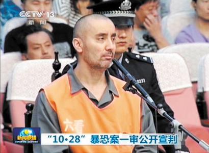 新華社烏魯木齊6月16日電新疆烏魯木齊市中級人民法院16日對北京“10·28”暴力恐怖襲擊案件一審公開宣判,分別以組織、領導恐怖組織罪和以危險方法危害公共安全罪,數罪并罰?,判處被告人玉山江·吾許爾、玉蘇甫·吾買爾尼亞孜、玉蘇普·艾合麥提死刑,剝奪政治權利終身;以參加恐怖組織罪、以危險方法危害公共安全罪,數罪并罰,分別判處被告人古麗娜爾·托乎提尼亞孜、布堅乃提·阿卜杜喀迪爾無期徒刑和有期徒刑20年;以參加恐怖組織罪,分別判處托合提·麥合麥提、吐遜江·阿不力孜、阿布拉·尼牙孜有期徒刑10年至5年。