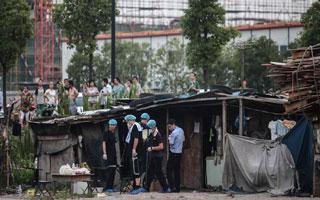 7月20日,杭州余杭區一簡易棚租房內的兩名女孩死亡,幾名市民在棚后圍觀。經警方勘查認定,兩女孩系他殺。當晚,余杭公安官方微博發布懸賞通告,經查,臧紀超(男,54歲,安徽人)有重大作案嫌疑。記者到達現場時,簡易棚租房外已經被警戒線封鎖,刑偵警察正在警戒線里忙碌。