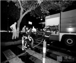 昨晚8點,可能因為是周六,天目山路、文三路、保俶路、教工路上依舊車流如梭。可接下來突然發生的變故,幾乎讓所有的司機和行人都愣了神——馬路兩側的行道路燈一齊陷入了黑暗。消防官兵從消防車與路口消防樁上接出了兩路水管,一直鋪設了五六十米,從巷子口拉至起火的慶豐變電所。