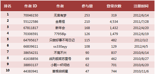 參與量前十的網友排名: