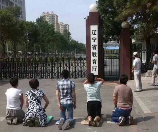 2014年7月31日,遼寧省沈陽市,由于近一周來在遼寧省各部門奔走上訪無果,報考沈陽音樂學院的四十余名學生家長代表今天選擇在遼寧省教育廳門前集體下跪,以祈求遼寧省教育廳出面給予說法。