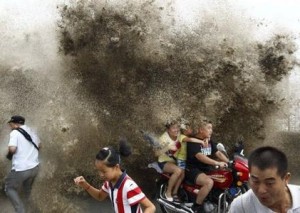16、杭州錢塘江現鬼王潮來襲?大潮涌向觀潮客躲閃不及遇險