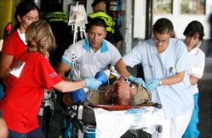 20日11時,岳陽市二醫院急診科接受了一嚴重外傷病人。搶救時家屬說:如果病人救活啦,我給你們醫護人員跪拜,如果救不活,你們所有醫護都不用活啦!結果盡力搶救后患者死亡,。隨后,家屬打傷醫生,并在辦公室打砸,還要求醫生向尸體下跪。21日,岳陽市多家醫院的約200名醫護人員前往岳陽市政府門前討說法。