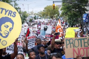 數(shù)千民眾23日齊聚紐約史塔登島,抗議紐約市白人警官以掐脖子手法制伏拒捕黑人男子賈納,導(dǎo)致肥胖又有氣喘毛病的賈納心臟病發(fā)身亡。警方估計(jì),超過2500人23日下午在史坦登島上街游行,表達(dá)哀傷、憤怒以及冀望擁有更美好未來。