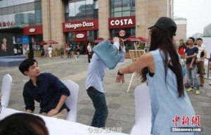 8月23日,在北京崇文門街頭舉行的寺庫(kù)奢侈品鑒寶會(huì)上,一女子的名包被鑒定為贗品,由于該款名包為其外籍男友從國(guó)外購(gòu)買,該女子認(rèn)為不可能為贗品,經(jīng)再三向鑒定師確認(rèn)后,女子生氣用包“痛打”男友。