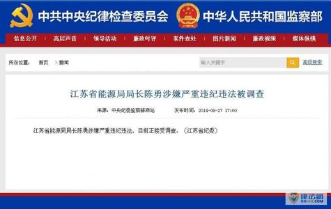 江蘇省能源局局長(zhǎng)陳勇涉嫌嚴(yán)重違紀(jì)違法,目前正接受調(diào)查。陳勇最近一次公務(wù)活動(dòng)是8月8日隨江蘇省發(fā)改委主任在南京市就加快推進(jìn)重大項(xiàng)目建設(shè)等進(jìn)行調(diào)研。