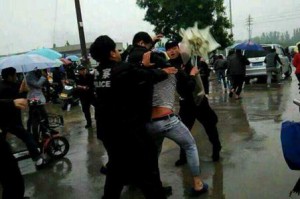 今日,一組名為《河南縣官與民眾對話:警察持槍撐傘護衛》的圖片在網絡流傳。圖說稱獲嘉縣群眾抗議污染企業,民眾上街維權,領導與民眾對話。