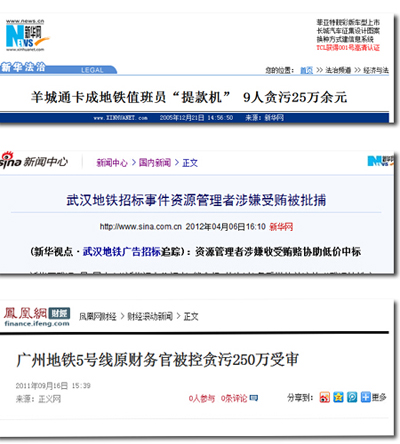 【地鐵系統人員問題】:因為地鐵系統工作人員或者領導的貪污腐敗、不當言行、不雅舉動、違法違規行為等造成的輿情危機事件。如: