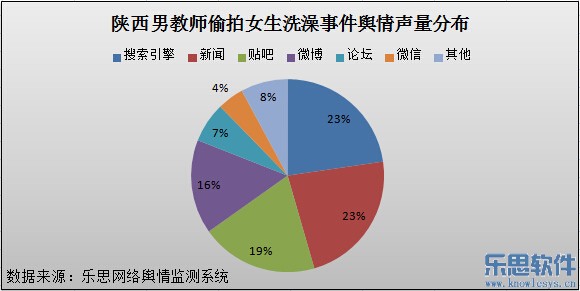 陜西男教師偷拍女生洗澡?圖二 男教師偷拍女生洗澡事件輿情聲量來源分布