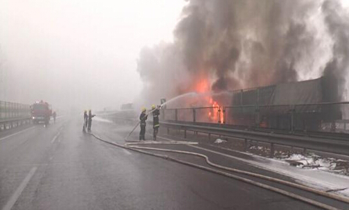 2014年1月16日,京沈高速河北遷安站附近發(fā)生重大車禍,約有百車相撞,面粉車爆炸起火,火勢(shì)沖天,多輛車被擠成面包鐵。共造成2人死亡,5人受傷,45臺(tái)車輛不同程度受損。