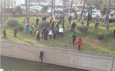 1月12日,網友“Doris秋兒”發表圖文微博爆料,南京一女子赤身裸體跳河,一男子跳下救人,裸女獲救后遭圍觀,救人者被冷落。博文稱:“大家都去圍觀裸女了,那個救人的哥們,大冷天的,也沒人拉他一把。”現場圖片顯示,一黑衣男子正在攀爬兩米多高的垂直河岸,岸邊無人上前拉他一把。事后救人男子的朋友在微博上為其打抱不平,稱救人男子如今正在讀大四,并在南京實習。