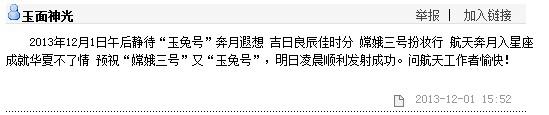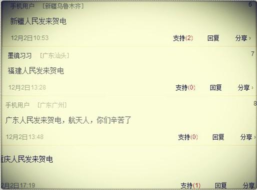 (三)網友觀點:為“嫦娥三號”發射成功祝賀 替中國自豪