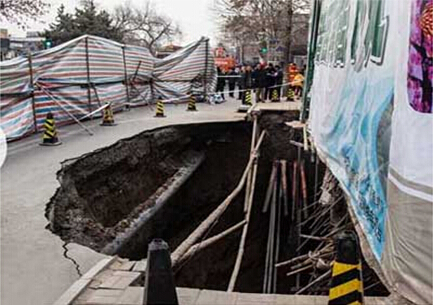 1月24日凌晨,北京西城區德勝門內大街93號院的一處民宅因業主偷挖地下室致道路塌陷,出現長15米、寬5米、深10米的大坑,而93號院也幾乎完全倒塌。事故造成周圍供水暫停,部分商戶受影響,暫停營業。另外,周圍的房屋也因此出現了坍塌,周圍居民不得不在附近賓館暫住。塌陷路段采取臨時交通管制,途經公交車甩站繞行?,F場負責工作的北京西城區建委一位工作人員表示,房主未經審批,偷挖18米深建地下室。經過3天的搶修,道路大坑才基本回填。