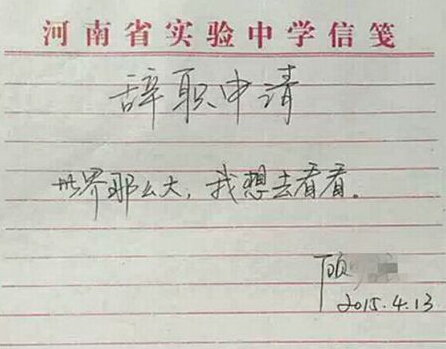 @萬里天:不就一平淡無奇的辭職信,有必要去追嗎?!是因為女教師辭職?是辭職信沒像慣用的冠冕堂皇理由?