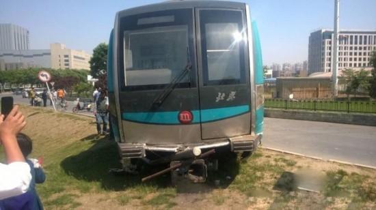 5、北京地鐵四號線測試車輛沖出軌道沖進綠地
