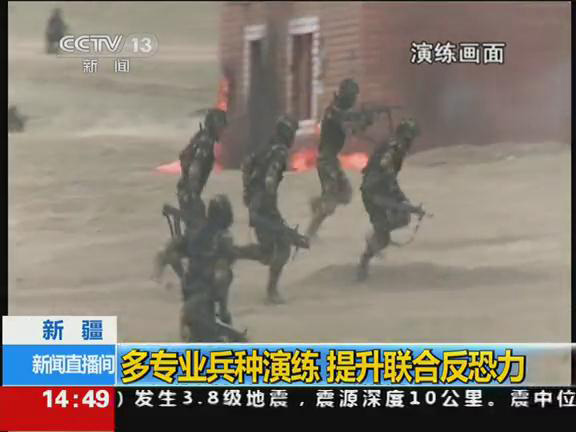 近日,新疆軍區在天山腳下進行了多兵種的實彈實戰演練。通過雷達無人機搜索鎖定目標后,由武裝直升機、反坦克導彈、自行突擊炮編隊進行精確火力打擊,隨后投送特戰部隊實施地面突擊,清剿殘余恐怖分子,整個過程用時不到十分鐘。