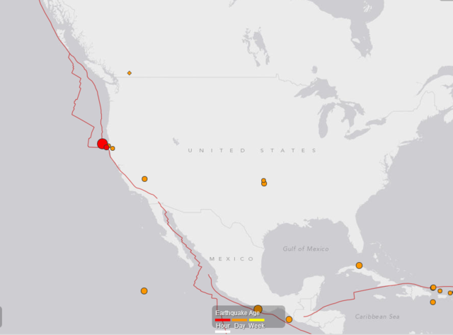 中新網(wǎng)3月10日電?據(jù)美國地質(zhì)勘探局消息,北京時(shí)間10日13時(shí)18分,美國加利福尼亞州西岸海域發(fā)生6.9級(jí)地震,震源深度7公里。地震震中距加利福尼亞州尤里卡市81公里。