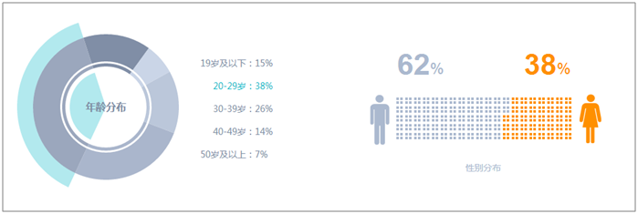 從事件關(guān)注的年齡分布來(lái)看,20-30歲成為關(guān)注主力,占比達(dá)到38%,30-39歲以26%排在第二。從年齡的構(gòu)成來(lái)看,大學(xué)生,城市白領(lǐng)成為關(guān)注的主要人群,他們也是該款手機(jī)的購(gòu)買主力。從性別來(lái)看,由于男性更為熱衷于科技產(chǎn)品,因此男性的關(guān)注度較女性要高。