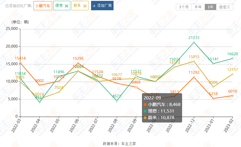此次負面事件真是雪上加霜,小鵬汽車銷量自2022年6月的15295輛頂峰,已經一路跌到2023年2月的6010輛;自2022年9月起銷量就落后同是造車新勢力的蔚來和理想汽車。