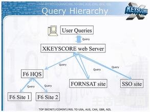——分析人員通過查詢國家安全局的XKeyscore數據庫,可以獲取人們的位置、國籍和之前產生的互聯網流量等信息。截止2008年,XKeyscore系統已經擁有了分布于全球上百個地點的服務器。
